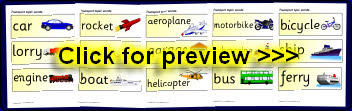 A set of word and picture cards linked to a topic on transport. Great for classroom displays, word banks or laminating for other topic-related activities.
