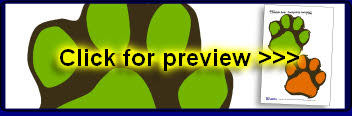 A Microsoft Word template that allows you to add text onto coloured bear paw prints.