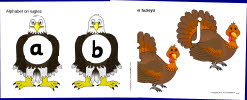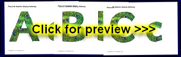 A PDF document with 26 alphabet letters (upper and lowercase) textured with a peacock feathers pattern. These are great for printing and cutting out for use on displays.