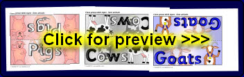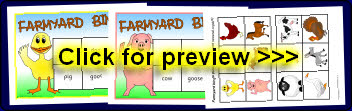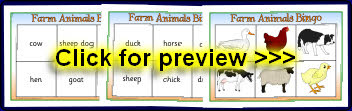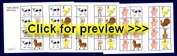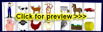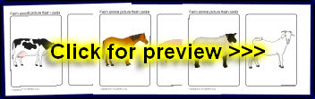 A set of 16 printable picture cards featuring farmyard images. Ideal for flash card games such as snap.