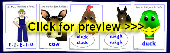 A set of A4 visual aids to accompany the well-known rhyme ‘Old Macdonald had a farm’.