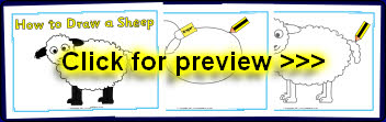 A set of posters showing step-by-step how to draw a simple cartoon sheep.