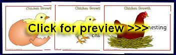 Simple A4-sized printable posters showing different stages in chicken growth.