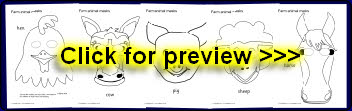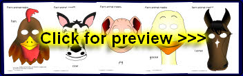 A fun set of printable farm animal masks for role-play. Simply print out, laminate, cut out and attach to lollipop sticks.