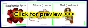 A set of printable word and picture cards linked to food chains.