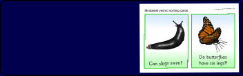 Printable cards posing questions about minibeasts with yes or no answers. Pupils sort the cards into separate yes and no piles.