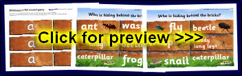 A colourful and fun game aimed at helping children to hear and discuss initial sounds in words. The children read the sound on the brick and try and guess which minibeast is hiding beneath. This resource also links perfectly to a topic on minibeasts.