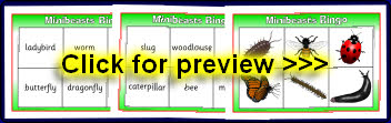 Printable minibeast bingo word/picture boards and picture cards.