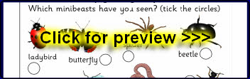 A form for children to tick off various minibeasts when out on a minibeast hunt.