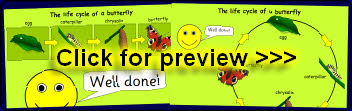 Two simple interactive PowerPoint presentations where pupils click and sequence the events in the life cycle of a butterfly.