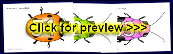 The numbers from 51 tom 100 presented on brightly coloured bugs. An extension to our Numbers 0-50 on bugs resource.