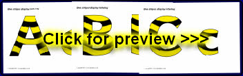 A PDF document with 26 alphabet letters (upper and lowercase) with a bee stripes pattern. These are great for printing and cutting out for use on displays.
