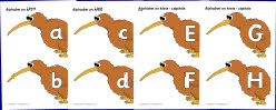 A set of simple A4-sized posters featuring different New Zealand animals and their names in clear text.