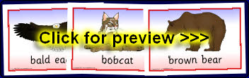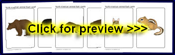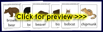 A set of printable picture cards featuring various North American animals. Also includes a set of smaller word cards for matching activities.