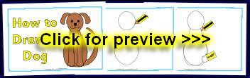 A set of posters showing step-by-step how to draw a simple cartoon dog.