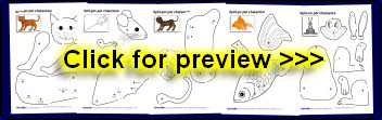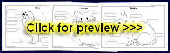 A set of black and white printable body parts which can be coloured and assembled into different pet animals using split pins.