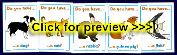 12 A4 posters with different pet animals posing the question, ‘Do you have...?’