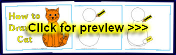 A set of posters showing step-by-step how to draw a simple cartoon cat.