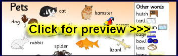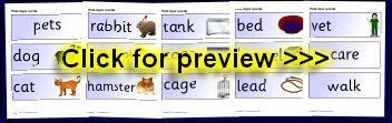 A set of word and picture cards linked to pets. Great for classroom displays, word banks or laminating for other topic-related activities.