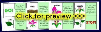 A set of 8 loop cards featuring descriptions and pictures of plant parts.