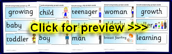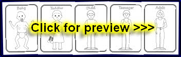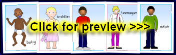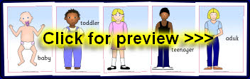 A set of cut-out people at different stages of growing up from baby to adult and elderly. Great for sequencing activities and general discussion about human growth.