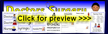 A set of signs, posters, labels and other bits for your Doctors Surgery role-play area. Also includes patient details and prescription forms, telephone message pad and more!