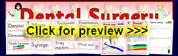 A set of signs, posters, labels and other bits for your Dental Surgery role-play area. Includes appointments sheet and a patient details form.