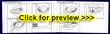 A set of instruction visual aids showing how to play brush your teeth. Ideal for teaching about writing instructions or discussions about health and hygiene.