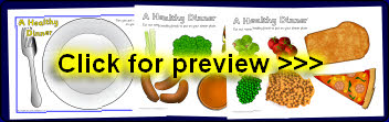 A printable dinner plate with healthy and non-healthy foods for children to cut and stick.