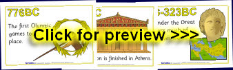 A great set of printable posters for use on a classroom Ancient Greece timeline display or to aid discussion about Ancient Greece.