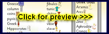 A printable word mat featuring words and pictures linked to Ancient Greece.