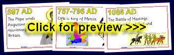 A set of 9 printable cards showing key events in Anglo-Saxon history. Great for sequencing activities or for use on classroom displays.