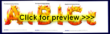 A PDF document with 26 fire-themed alphabet letters (upper and lowercase). These are great for printing and cutting out for use on displays.