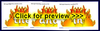 The 100 high-frequency words as specified in the DfES ‘Letters and Sounds’ document, presented on flames.
