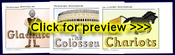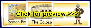 A great set of printable posters for use on a Roman Empire classroom timeline display or to aid discussion about the Romans.