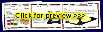 A printable recipe for making Ancient Roman bread. Includes ingredients and equipment list and measurements together with illustrated instructions on how to bake. Great for using when making the bread, or for follow-up work or classroom displays.