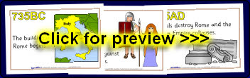 A set of printable cards showing key events in the rise and fall of the Roman Empire. Great for sequencing activities or for use on classroom displays.