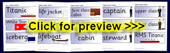 Printable word and picture cards linked to the Titanic.