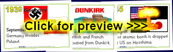 A great set of printable posters and cards for use on a classroom World War Two timeline display or to aid discussion about events during the War. The pack includes 38 different posters showing key events the 2nd World War, as well as a set of cards which could be ordered or used to create a classroom timeline.
