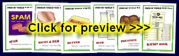 A set of printable posters that include pictures of rationed food, and the weekly amounts allowed, in England during World War 2.