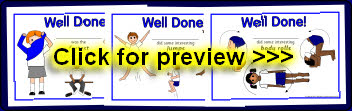 A set of 11 certificates to reward children for achievements in PE lessons. Includes fastest getting changed, jumps, balances, throwing and catching, bouncing and more. Also includes a blank certificate to write your own achievement.