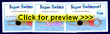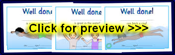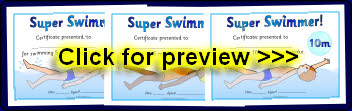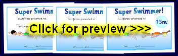A set of certificates to present to children who can swim breast stroke at different distances.