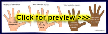 A set of printable hands with reminders for children of what hands are for and not for.
