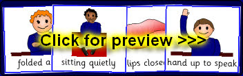 A set of images showing text and pictures to remind children of ground rules for good speaking and listening. The images are re-sizable and could be printed as large visual aids or for use as small reminder-cards.