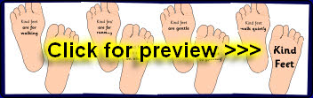 A set of printable feet with reminders for children of what feet are for and not for.