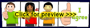 Cards for children to hold up (could be fixed to lollipop sticks) when taking part in class discussions or debates.