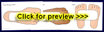 Simple printable writing frames in colour and black and white featuring feet for children to write in.