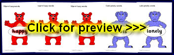 ‘Warm Fuzzy’ and ‘Cold Prickly’ characters featuring feelings and descriptive words associated with each.