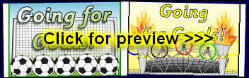 Two printable ‘Going for Goals’ motivational posters with a football or Olympic theme.