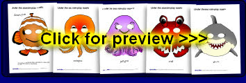 A fun set of 9 role-play masks with sea creatures such as clown fish, shark, ray, jellyfish, starfish, puffer fish, octopus and more - for children to colour themselves.
